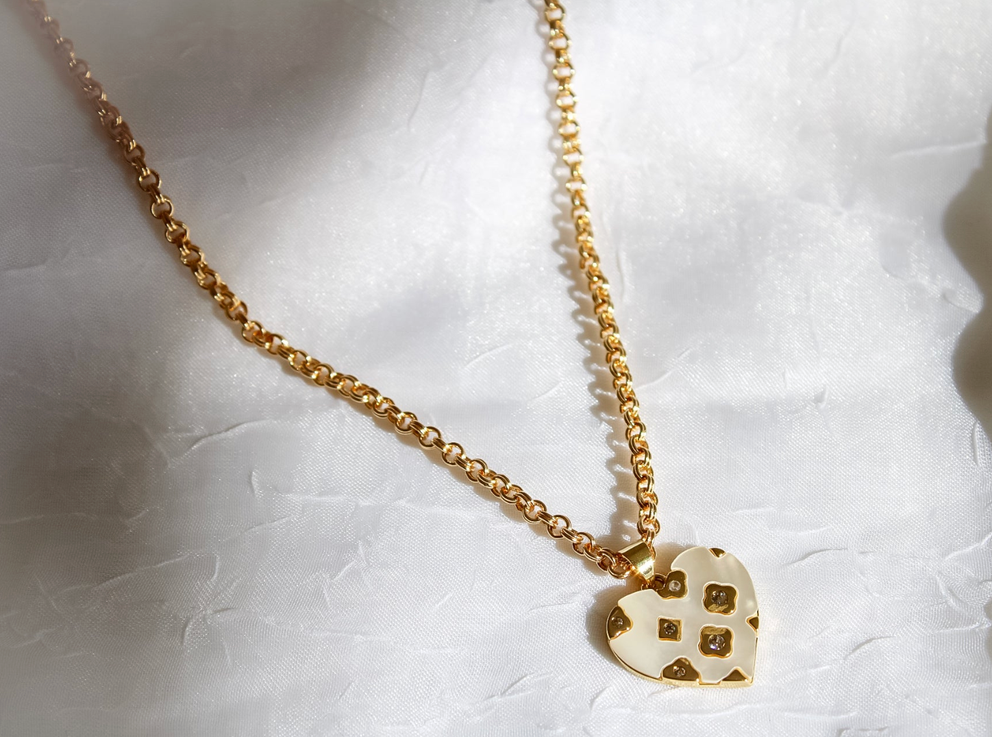 Maddie Chain & Gold Diamond Pearl Large Heart Charm