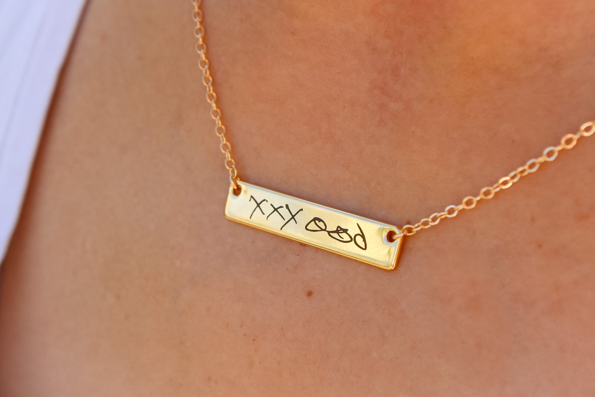 Transform a cherished note, signature, or message from a loved one into a timeless piece of jewelry. Whether it's a letter from someone close, a message from a significant other, or handwriting from someone who has passed, we delicately engrave their handwriting onto a beautiful necklace.