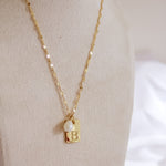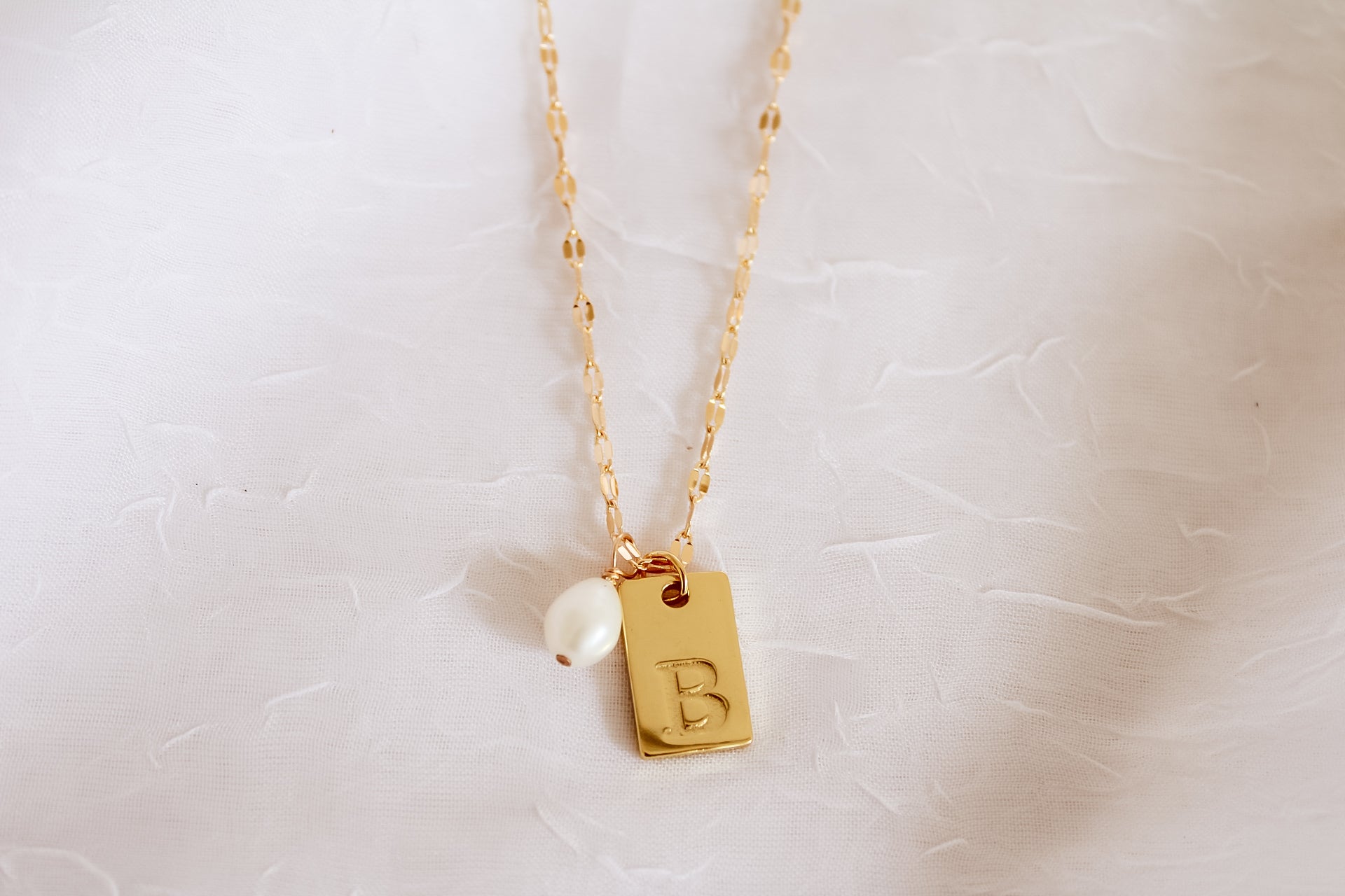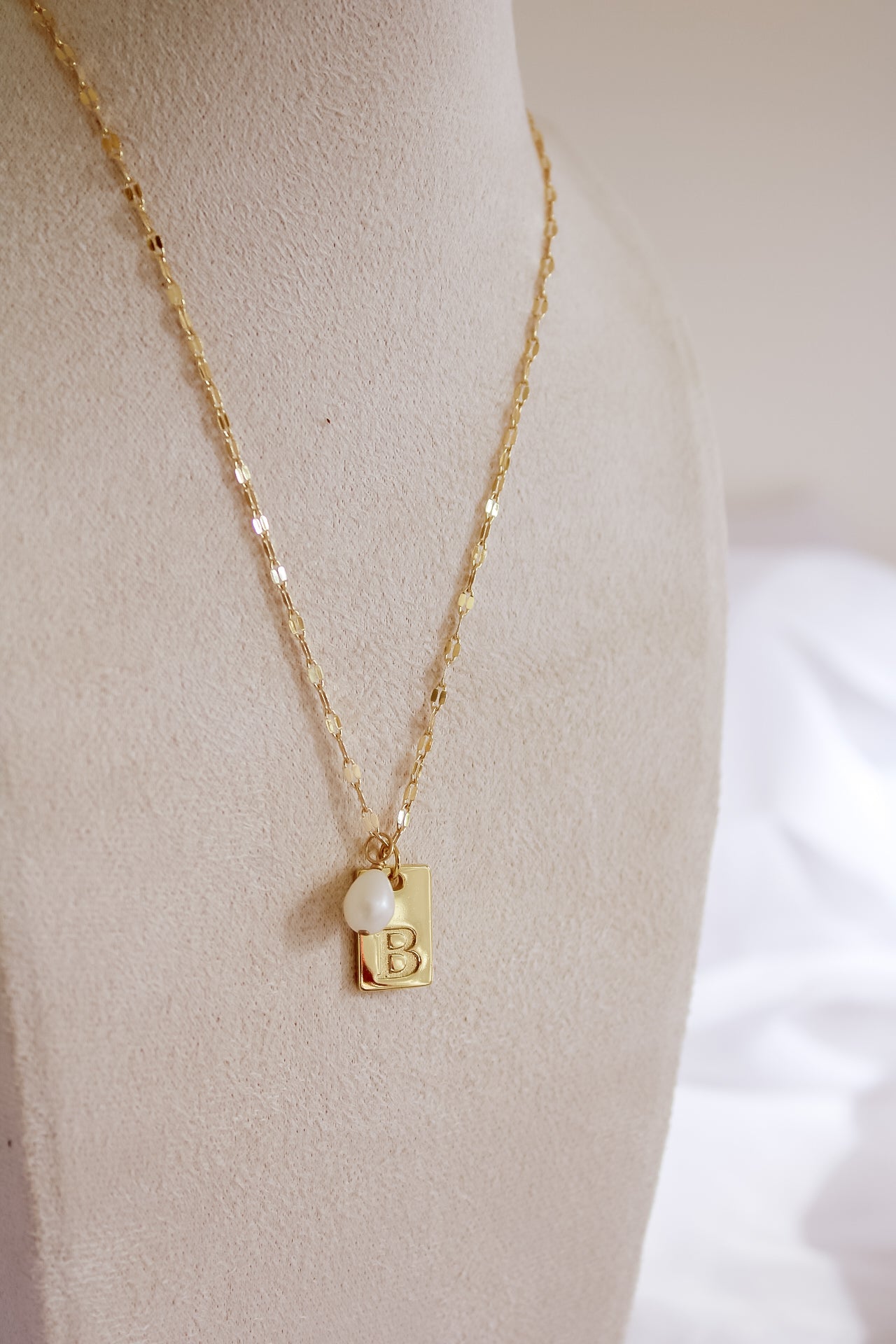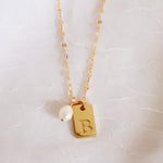Ally chain & Pearl Charm & Gold Rectangle Initial Charm