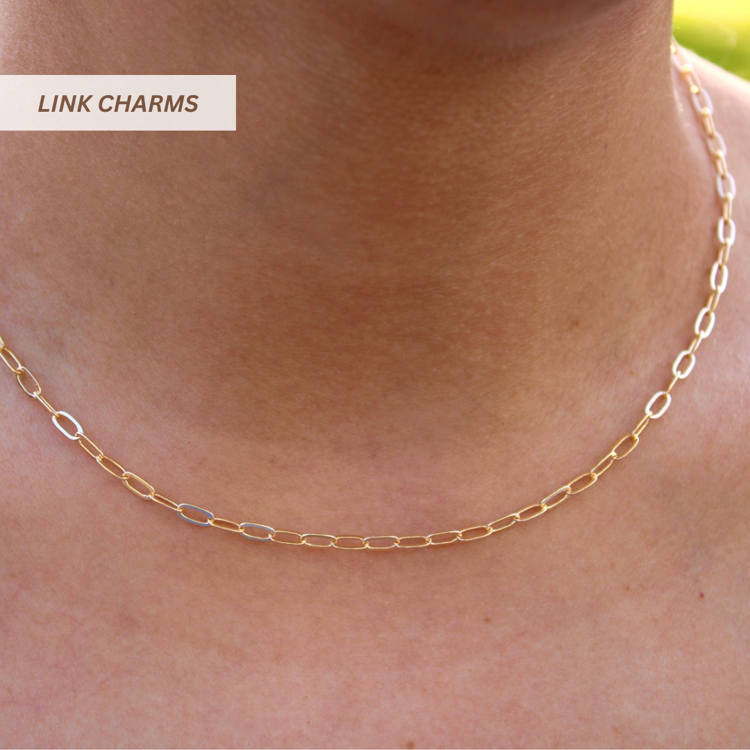 This chain will have charms LINKED to the actual chain loops (charms won't move around). Please leave me a note (note option at checkout) for the order you want the charms in.