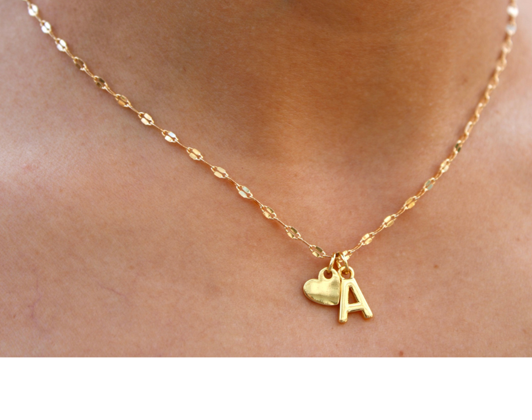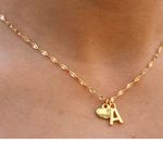 Ally Chain & Mini Sideways Gold Heart Charm & Dainty Gold Initial Charm