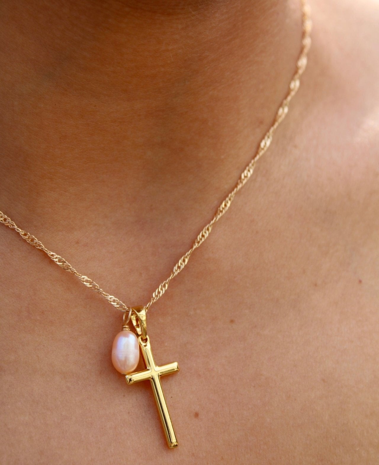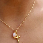 Morgan Chain & Pink Pearl Charm & Long Cross Charm