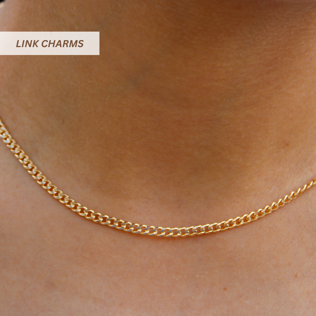 This chain will have charms LINKED to the actual chain loops (charms won't move around). Please leave me a note (note option at checkout) for the order you want the charms in.